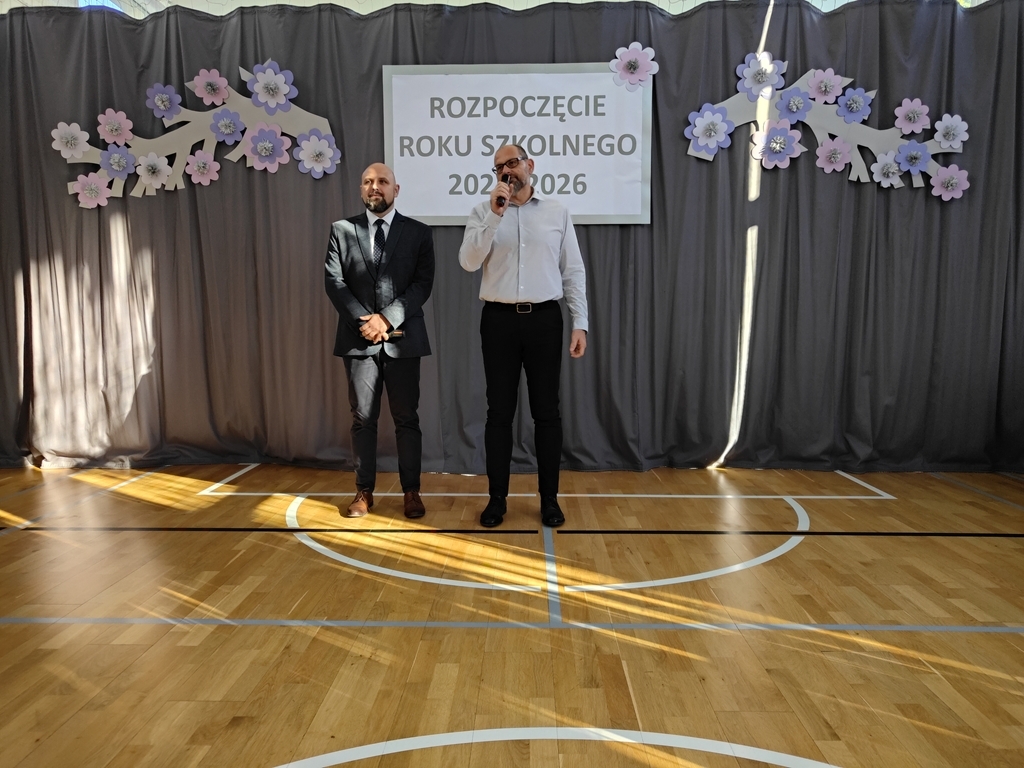 Rozpoczęliśmy od oficjalnego powitania przez naszych Dyrektorów, którzy skierowali do nas wszystkich słowa otuchy i motywacji na nadchodzące miesiące. Następnie w podniosłej atmosferze wspólnie odśpiewaliśmy hymn państwowy.