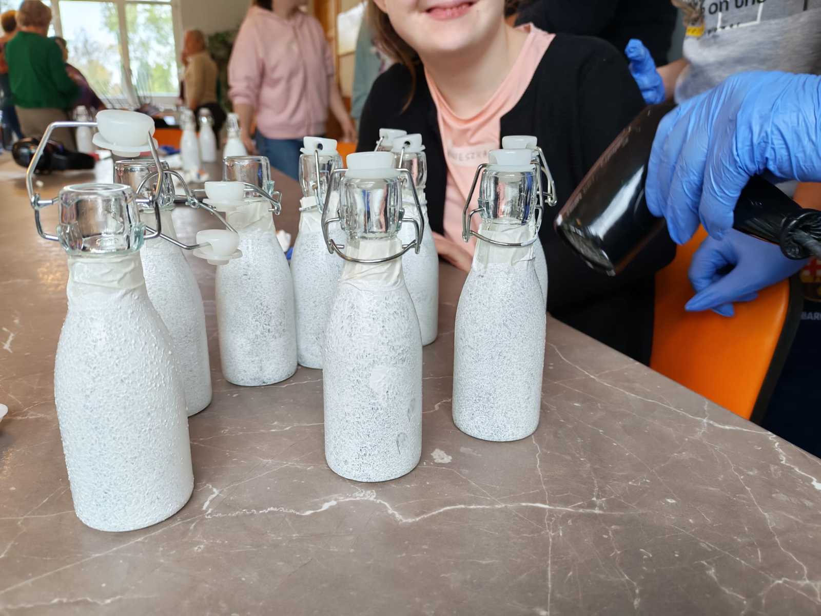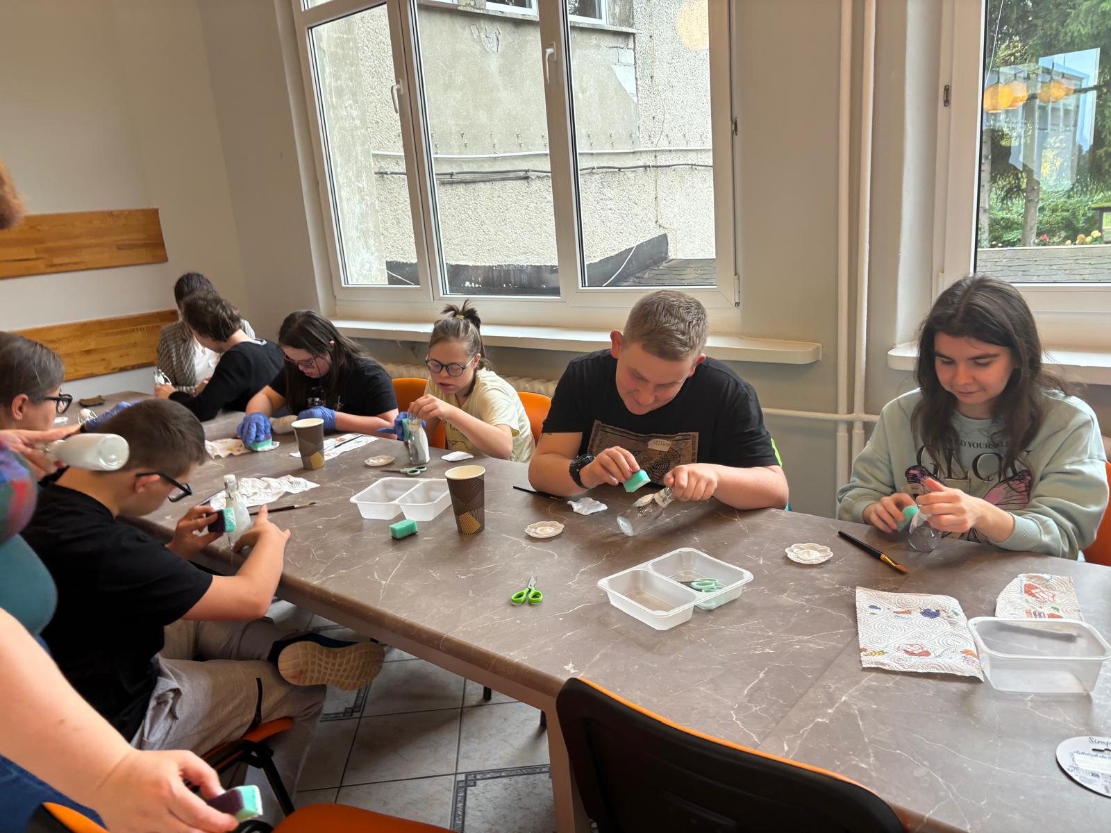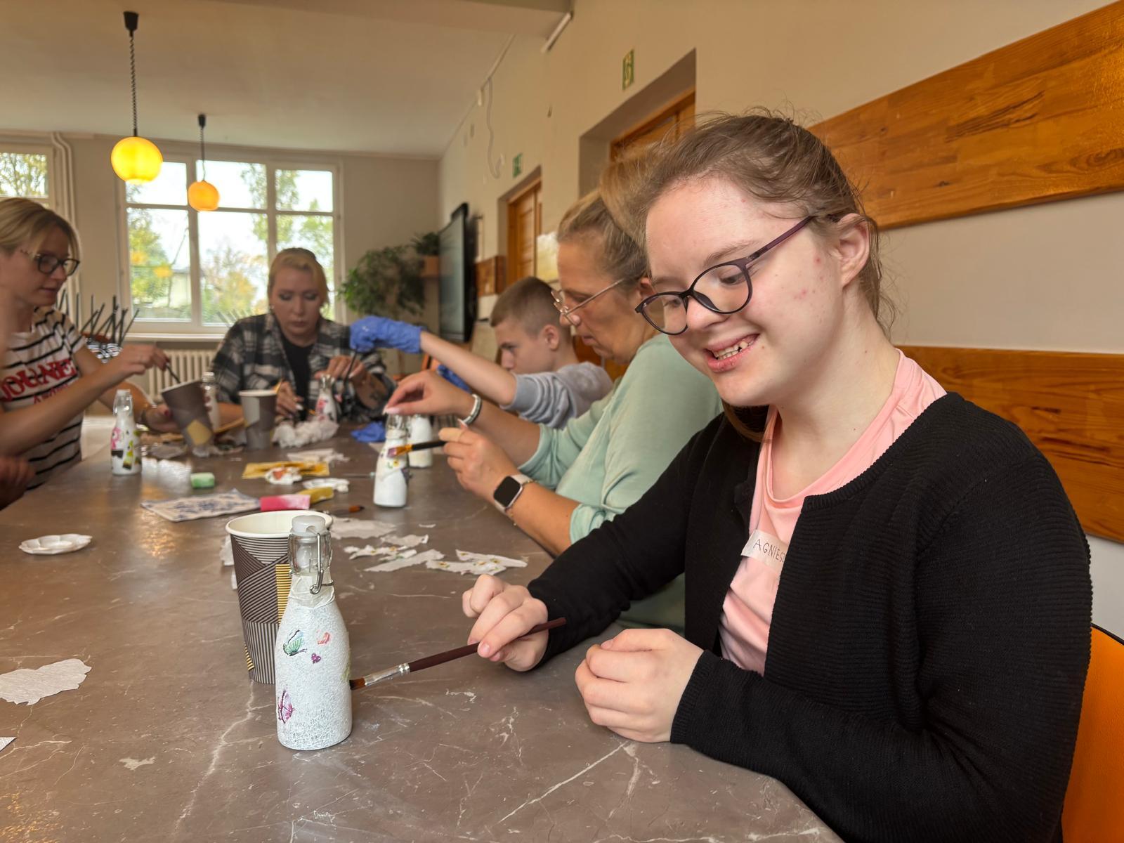 Pierwsze spotkanie miało charakter warsztatów rękodzielniczych, podczas których uczestnicy poznali technikę decoupage i wspólnie ozdabiali szklane butelki. Zajęcia przebiegły w miłej i twórczej atmosferze, sprzyjającej integracji międzypokoleniowej, wymianie doświadczeń oraz rozwijaniu kreatywności.