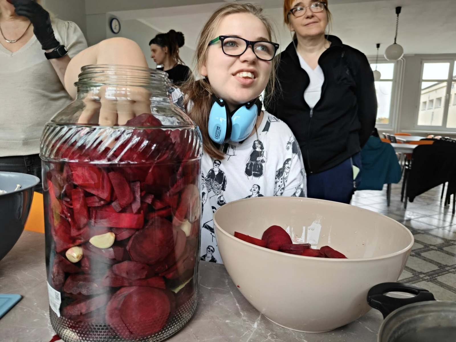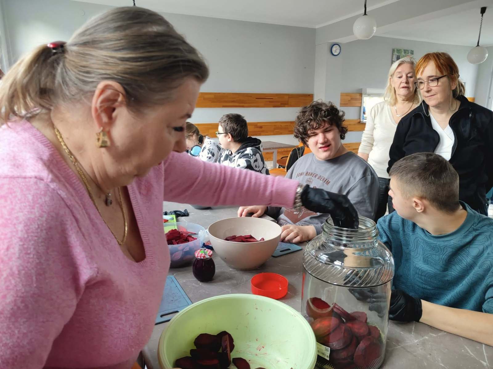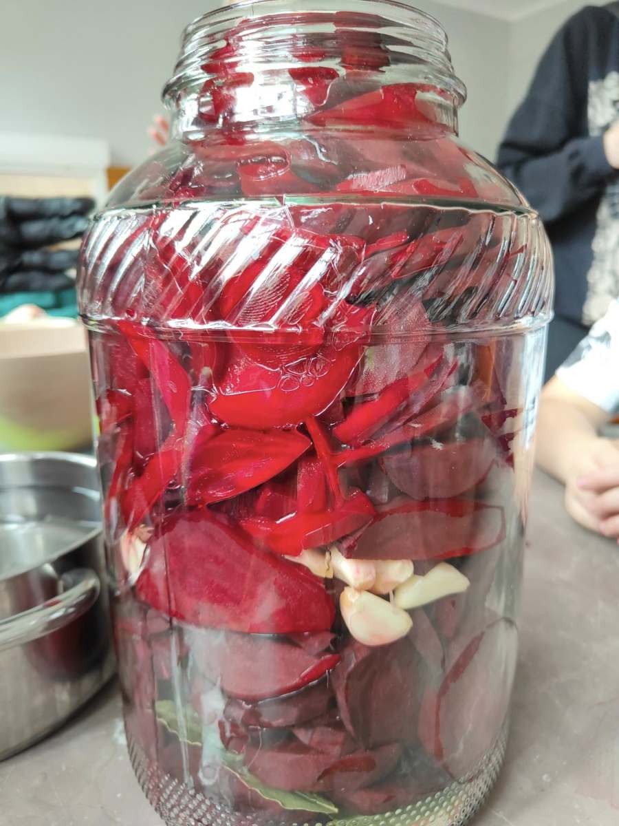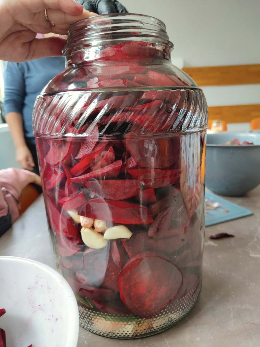Podczas zajęć uczestnicy wspólnie uczyli się, jak przygotować domowy zakwas z buraków – cenną tradycyjną recepturę, która jest naturalnym źródłem witamin i probiotyków. Wspiera odporność i poprawia pracę układu pokarmowego.