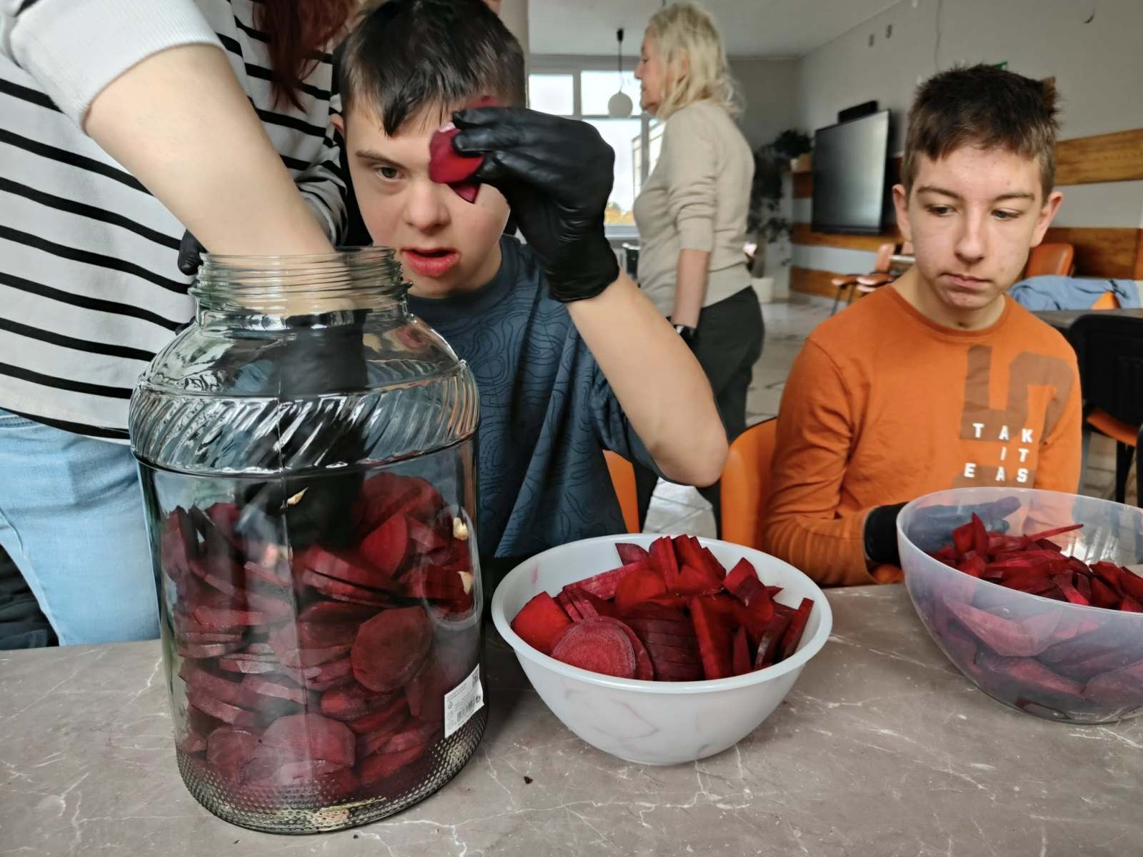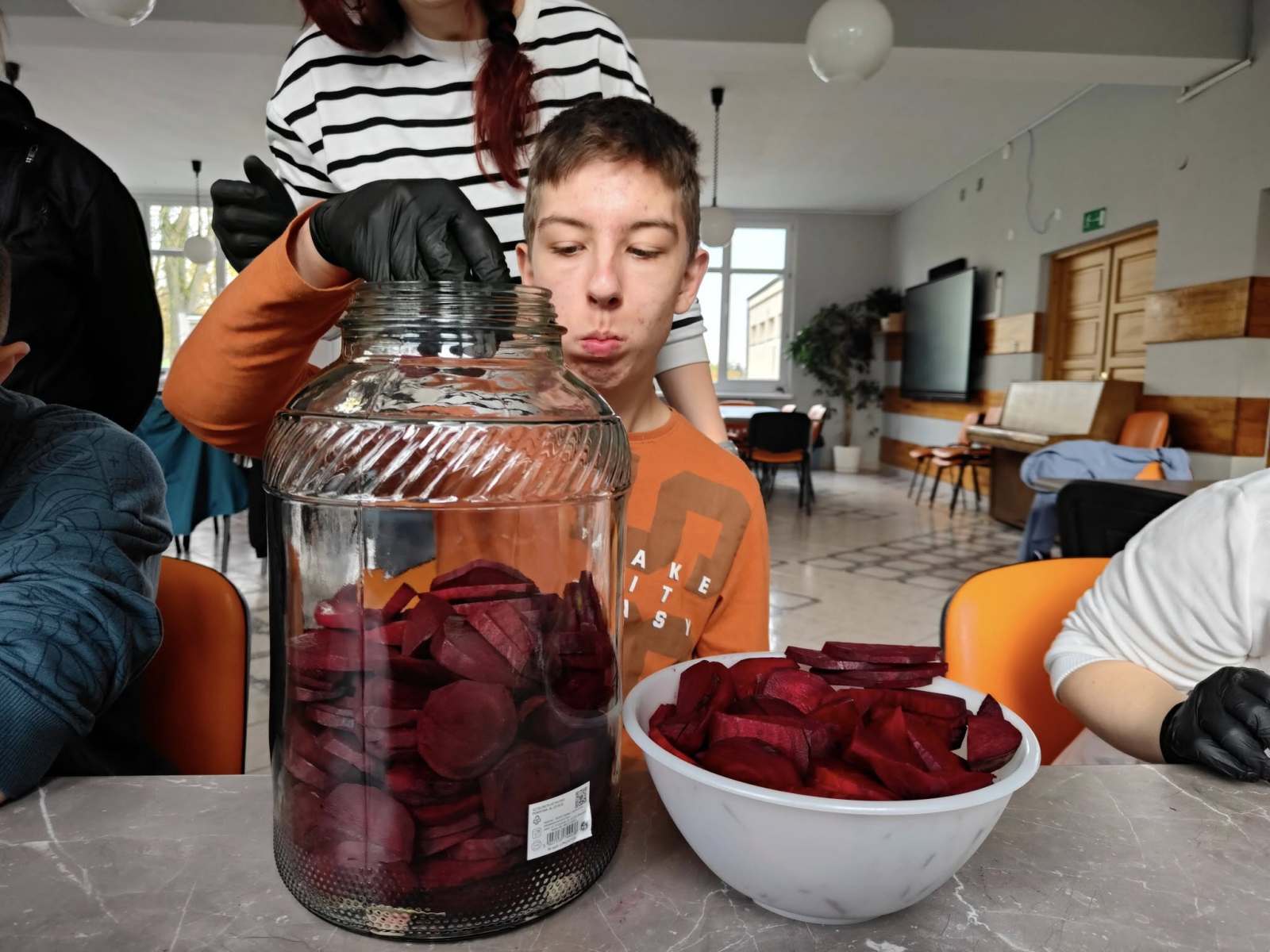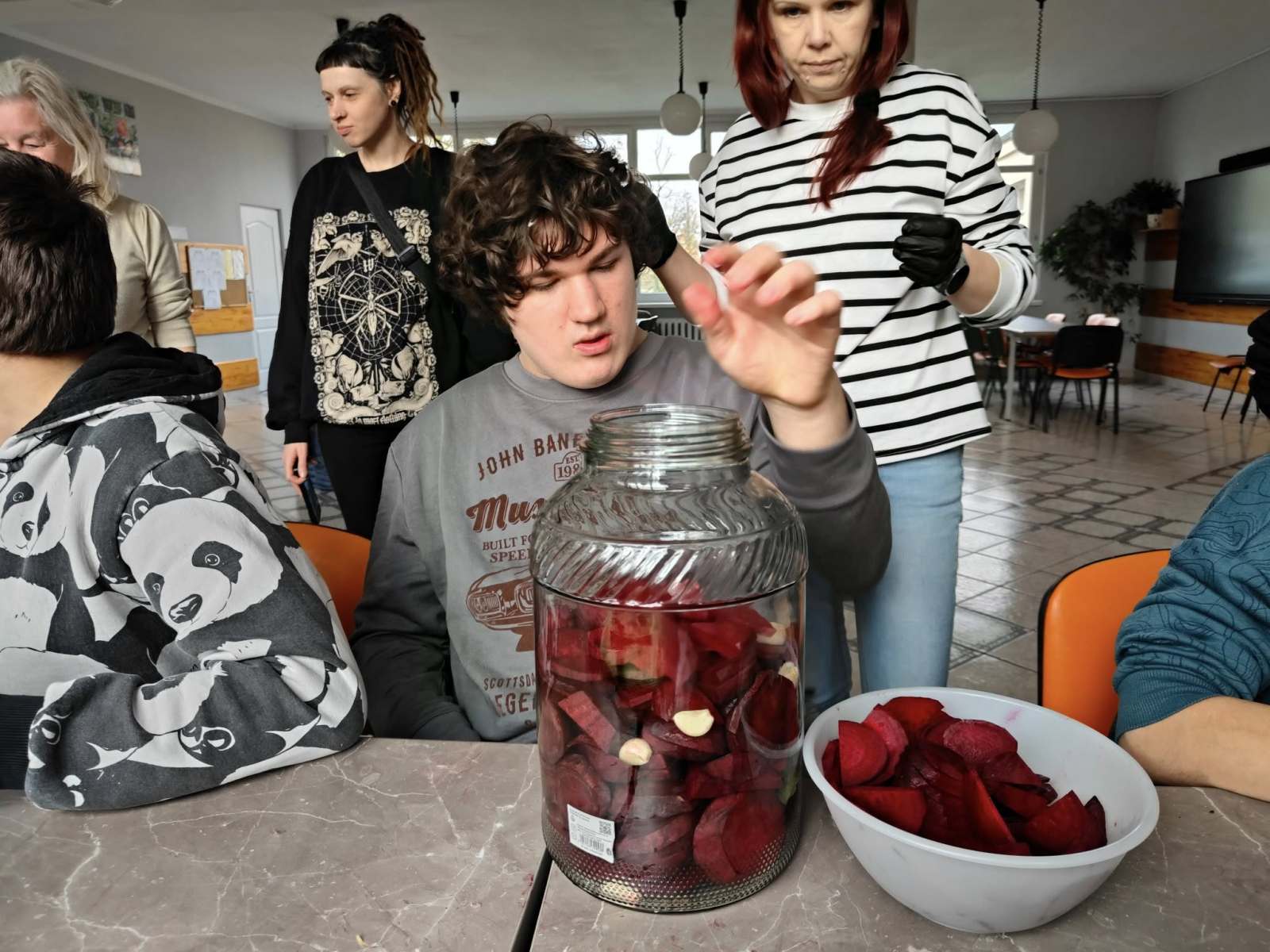 Podczas zajęć uczestnicy wspólnie uczyli się, jak przygotować domowy zakwas z buraków – cenną tradycyjną recepturę, która jest naturalnym źródłem witamin i probiotyków. Wspiera odporność i poprawia pracę układu pokarmowego.