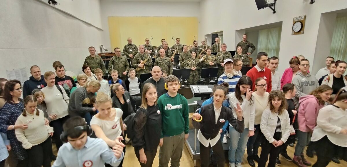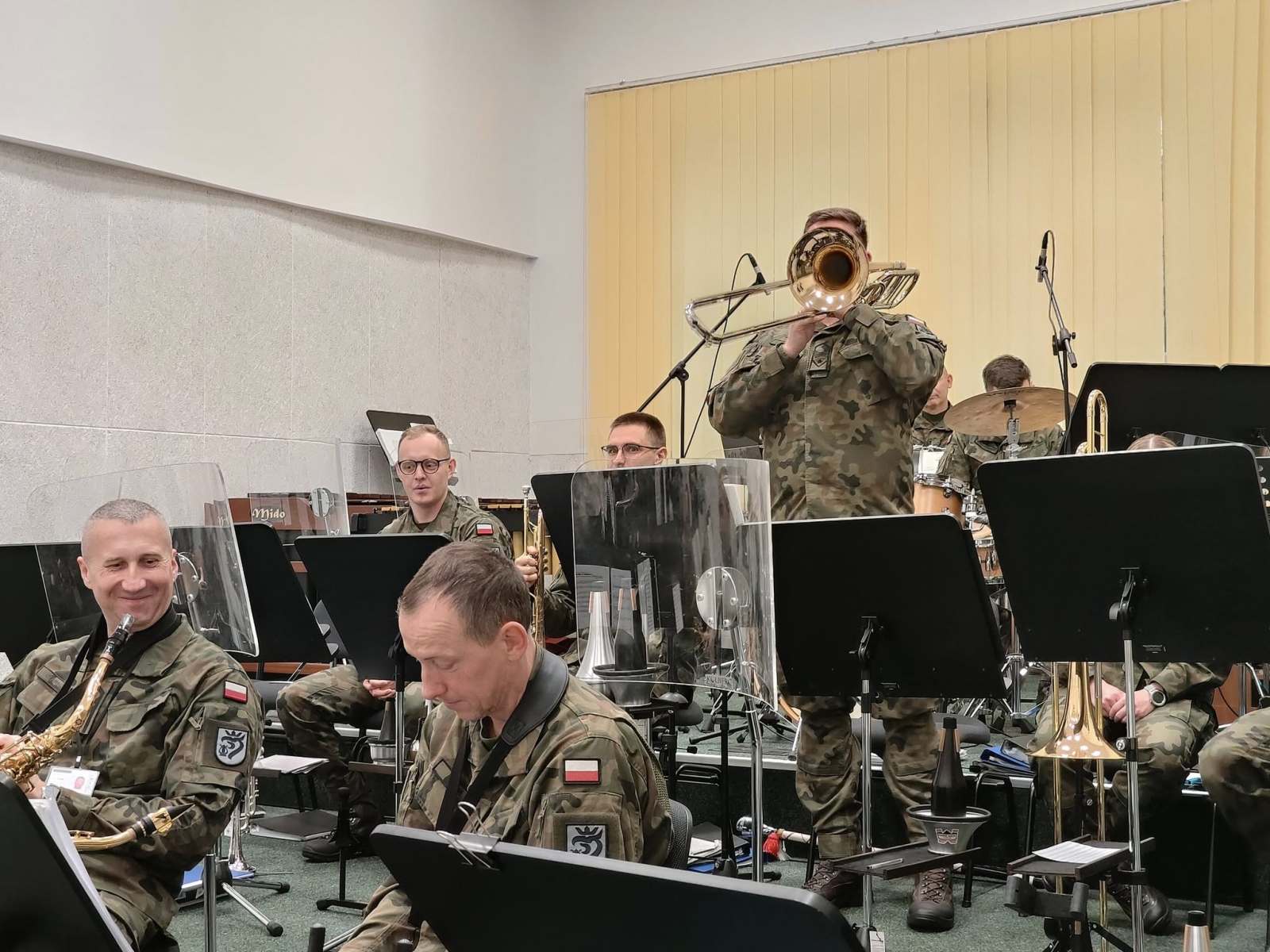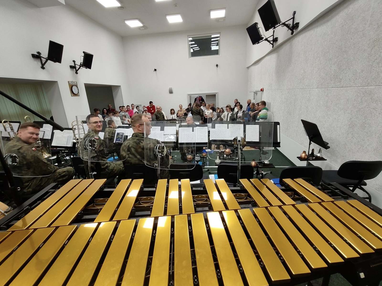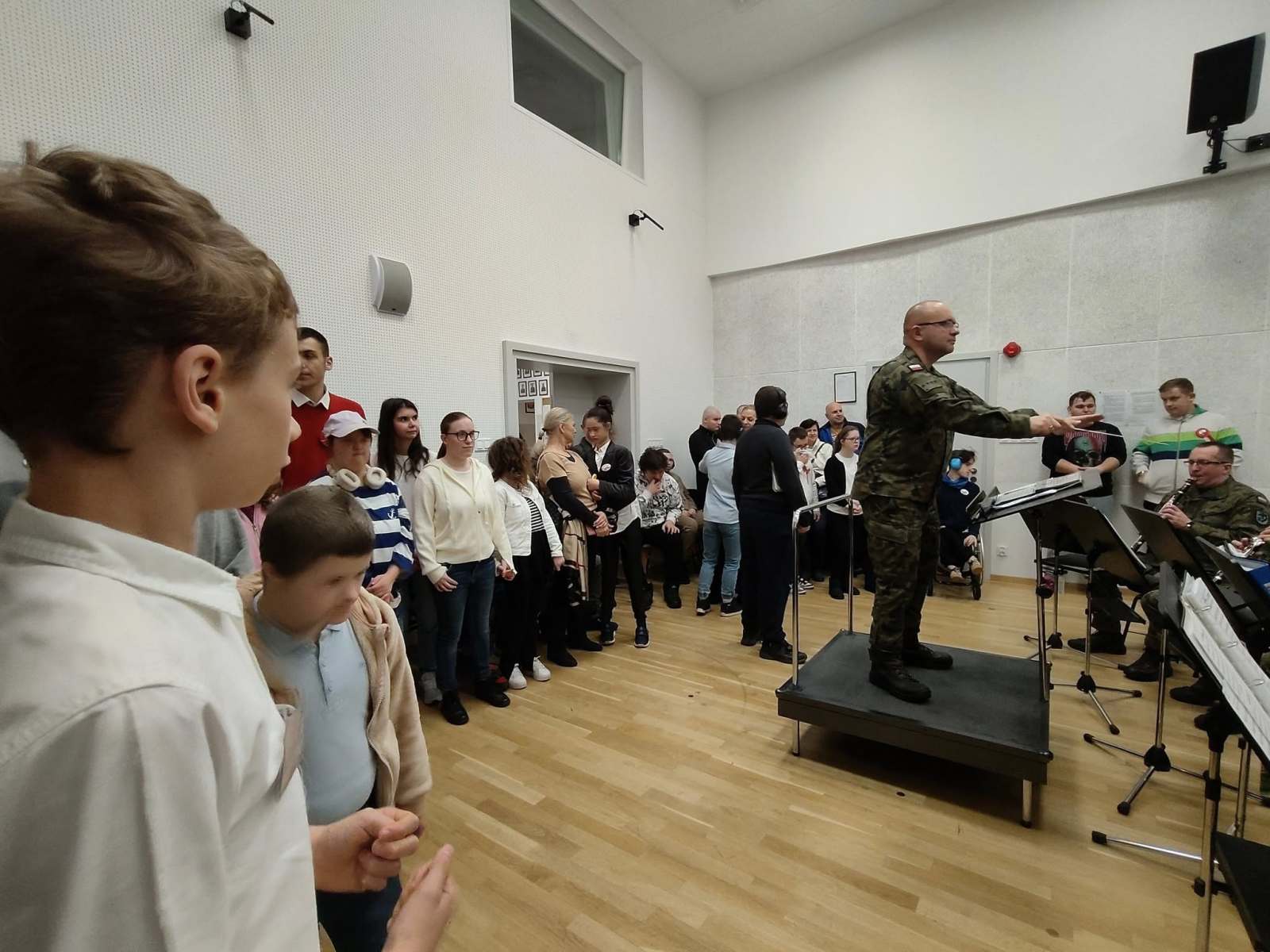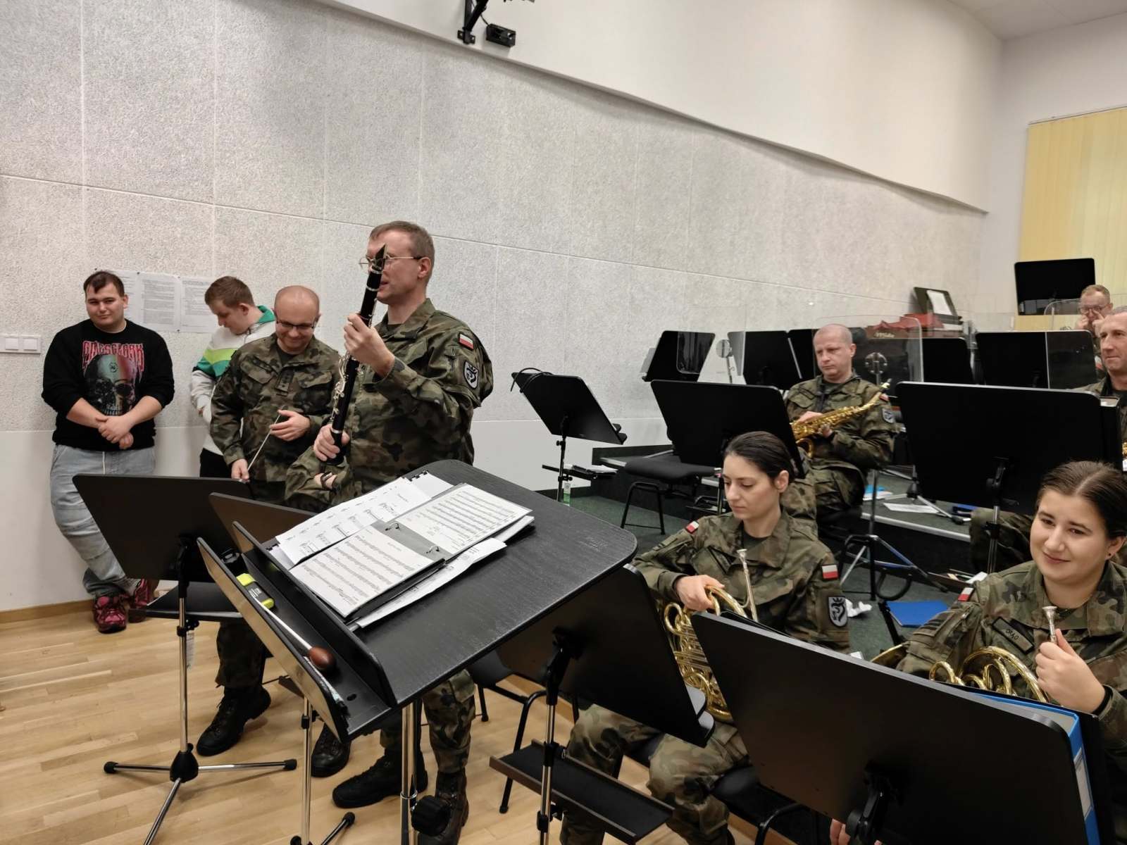 z muzykami Orkiestry Wojskowej w Szczecinie, podczas którego wspólnie zanuciliśmy piosenkę pt. ”Czerwone maki na Monte Cassino.” Następnie utrwaliliśmy nazwy instrumentów