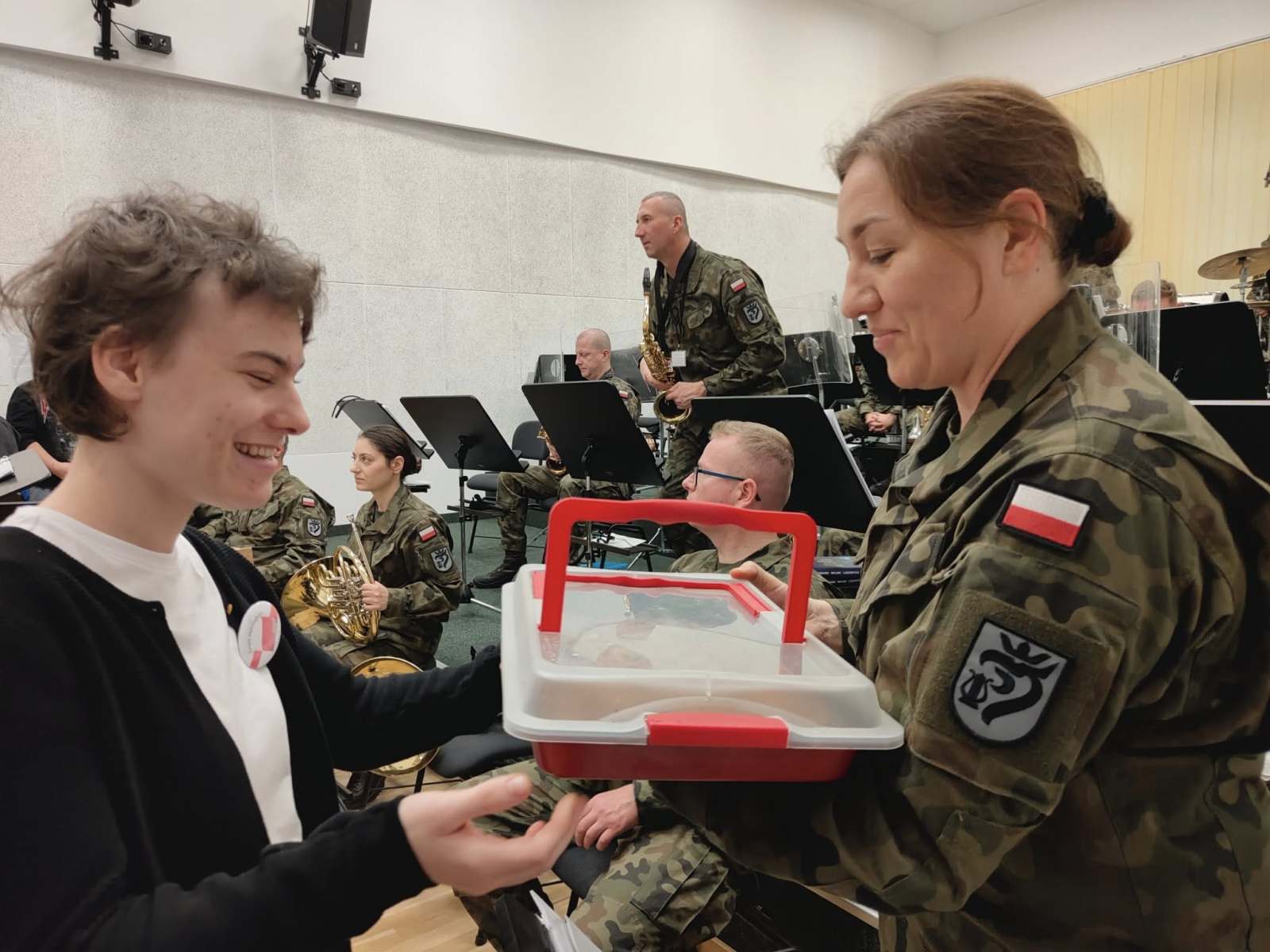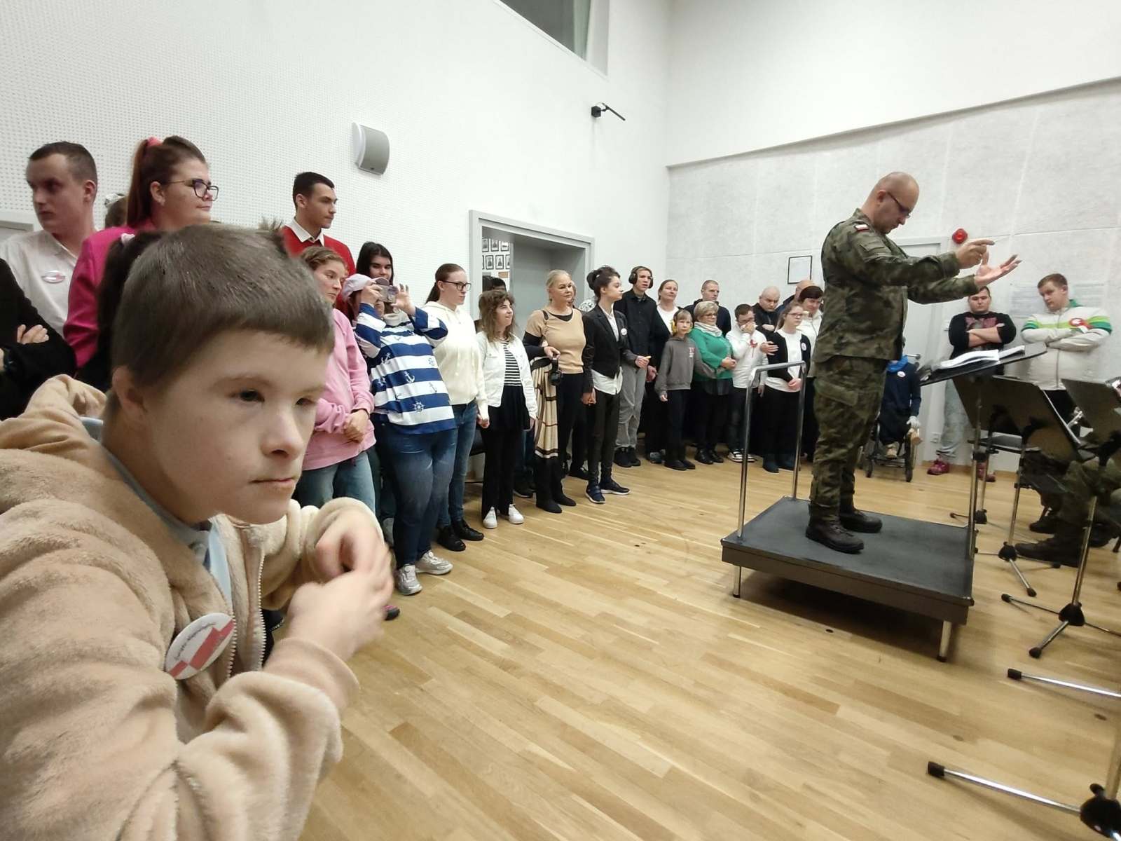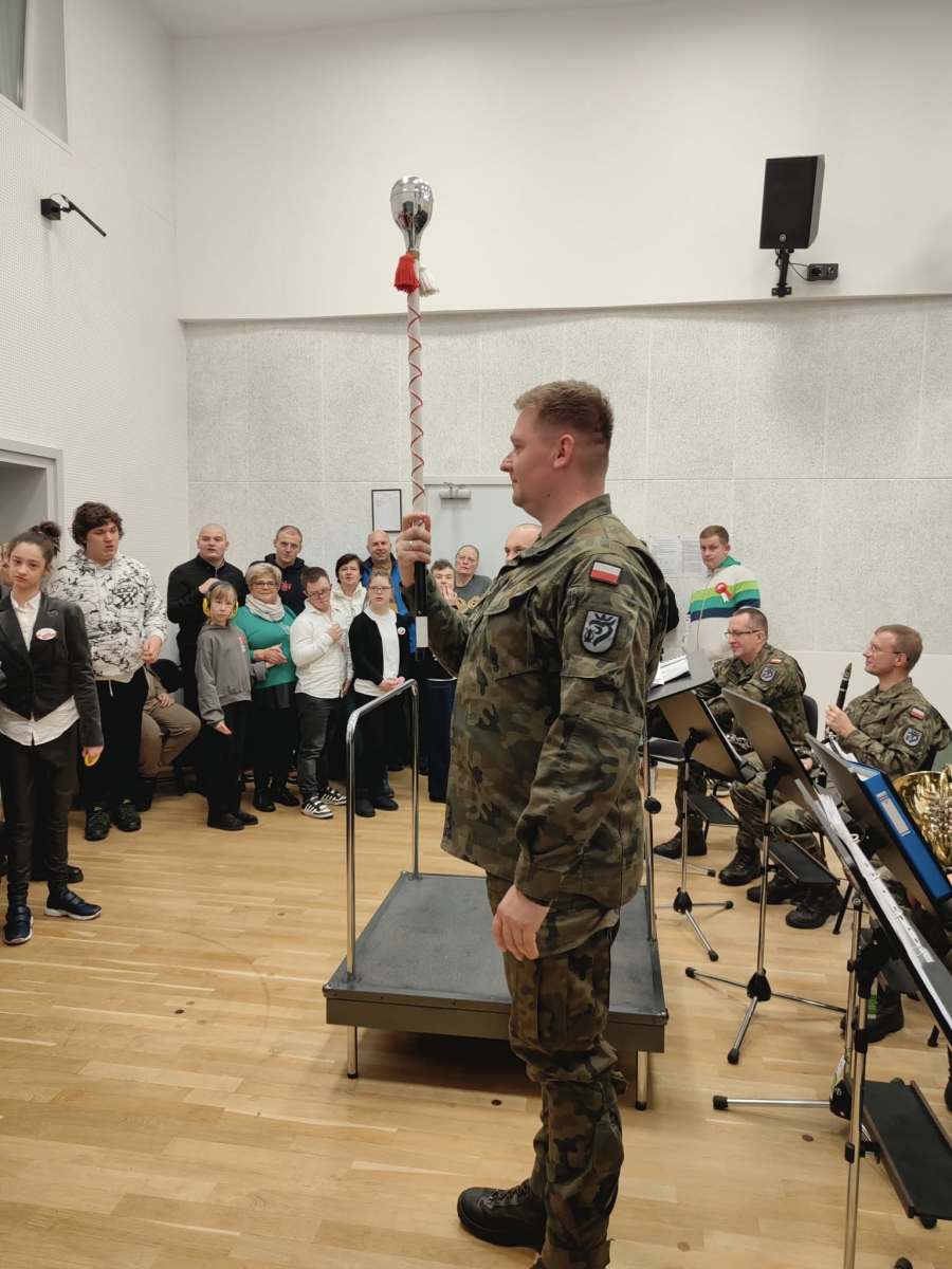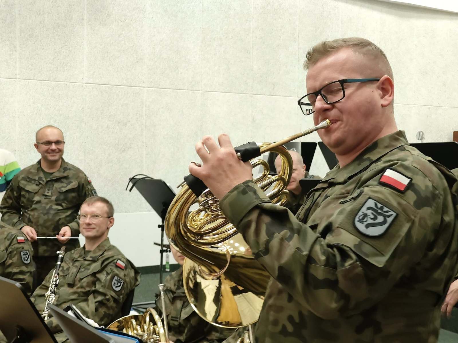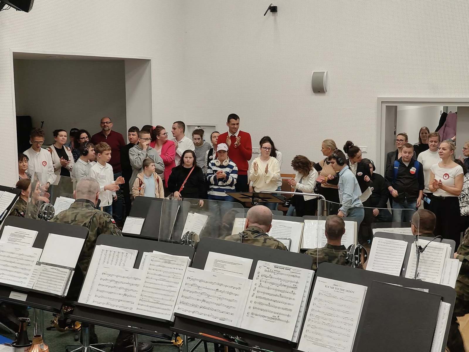 z muzykami Orkiestry Wojskowej w Szczecinie, podczas którego wspólnie zanuciliśmy piosenkę pt. ”Czerwone maki na Monte Cassino.” Następnie utrwaliliśmy nazwy instrumentów