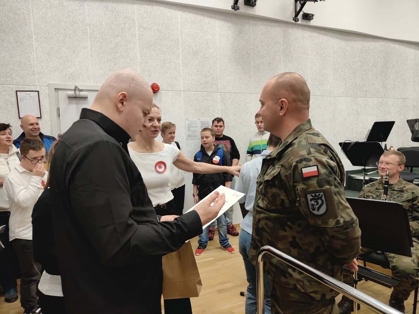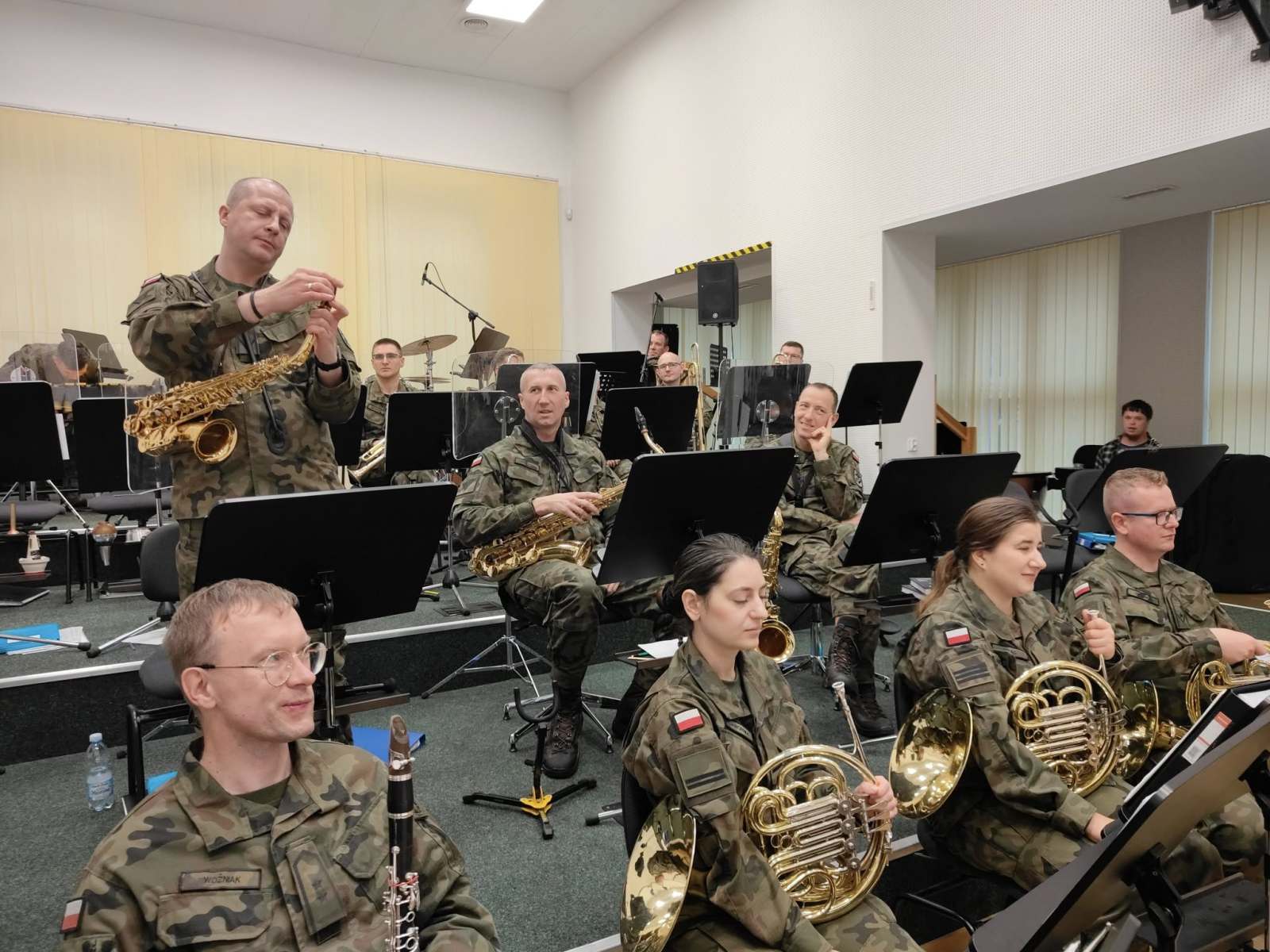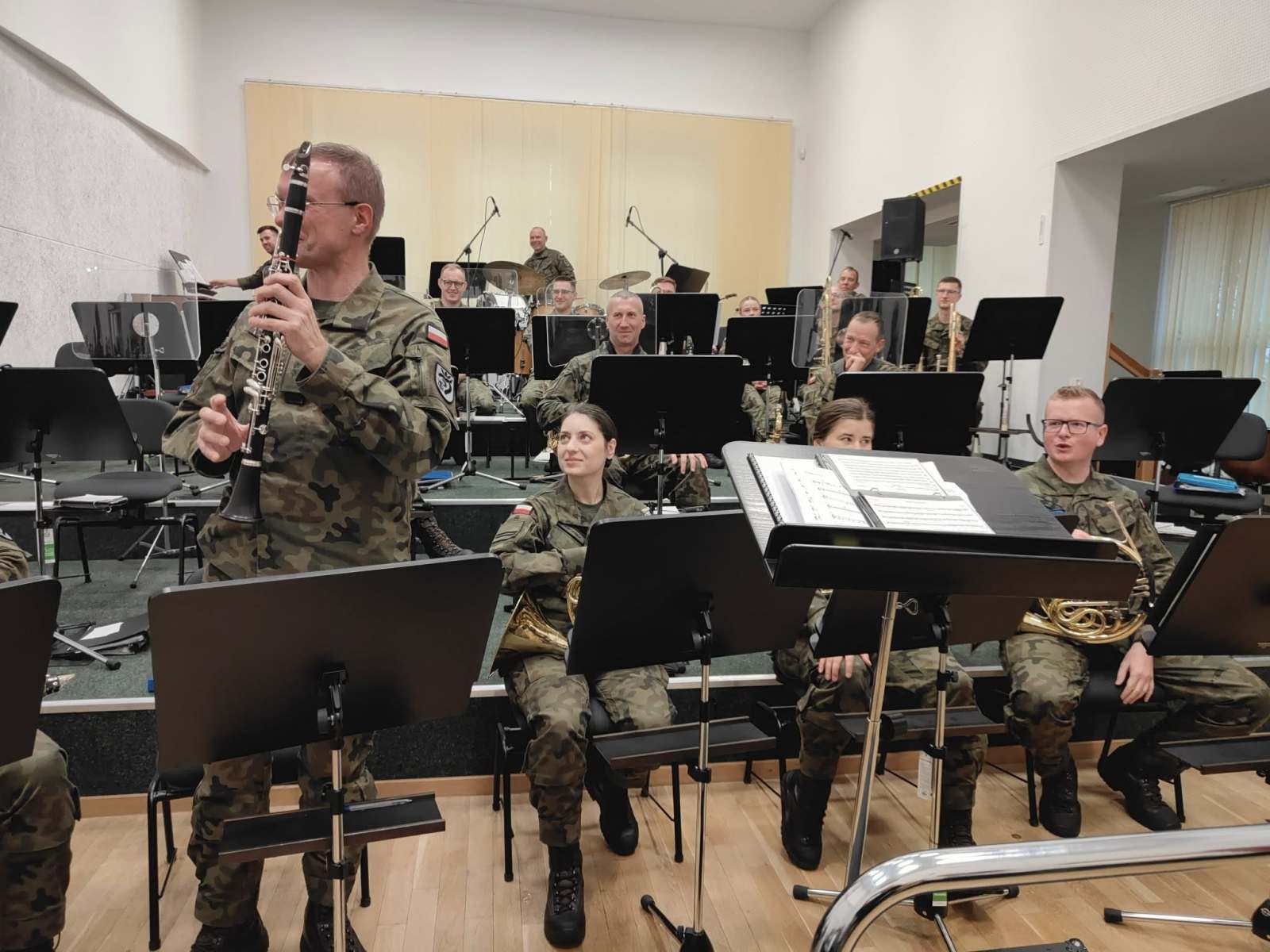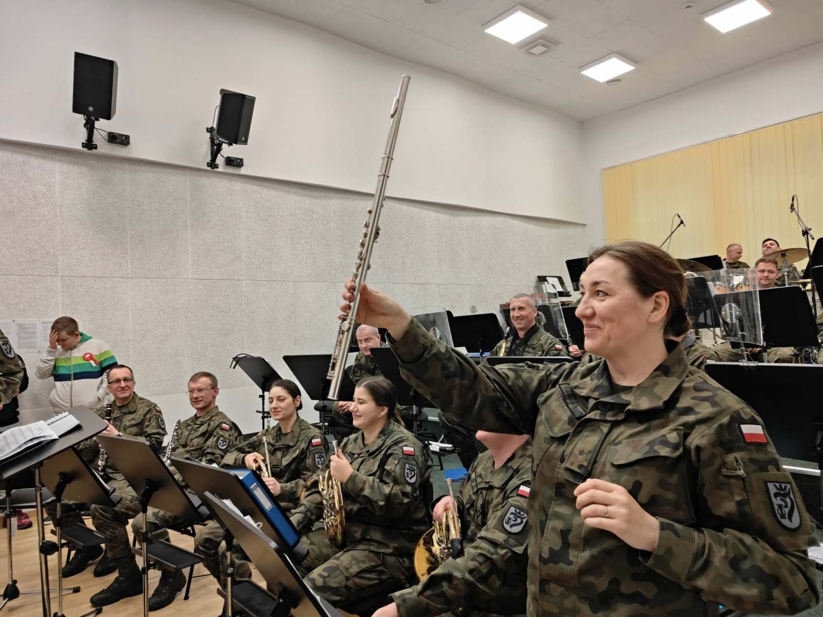 z muzykami Orkiestry Wojskowej w Szczecinie, podczas którego wspólnie zanuciliśmy piosenkę pt. ”Czerwone maki na Monte Cassino.” Następnie utrwaliliśmy nazwy instrumentów
