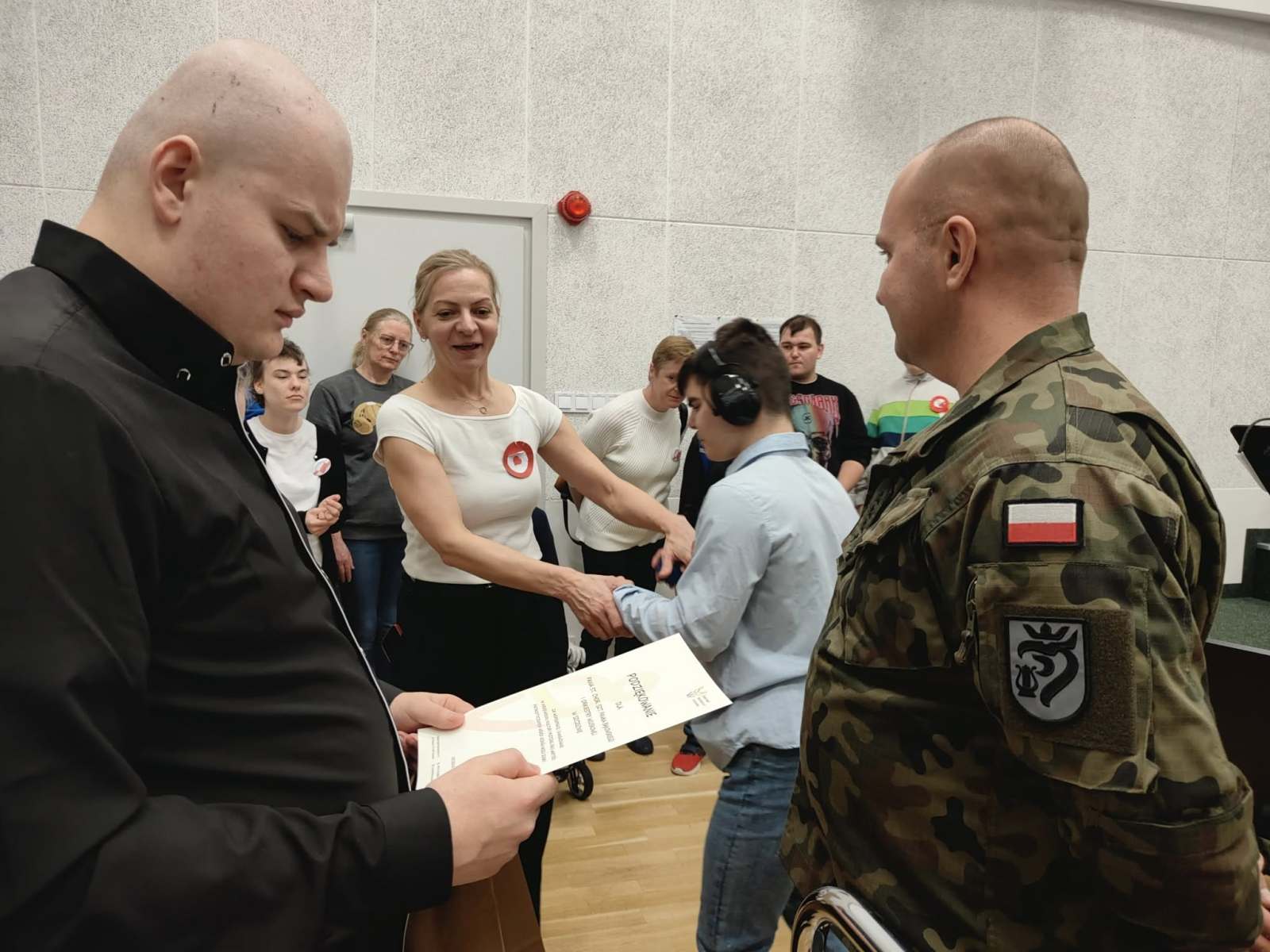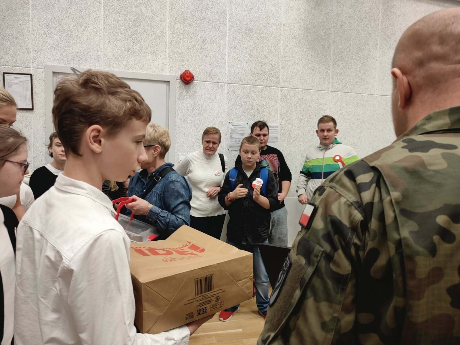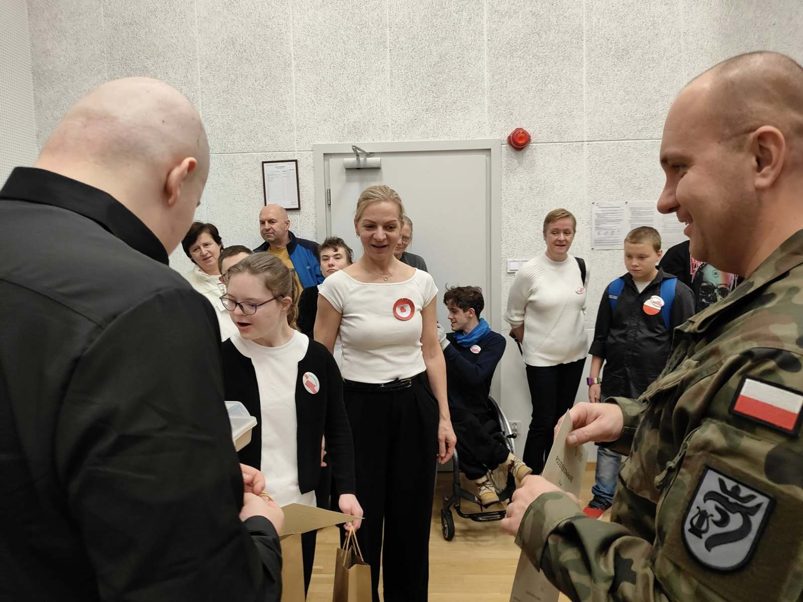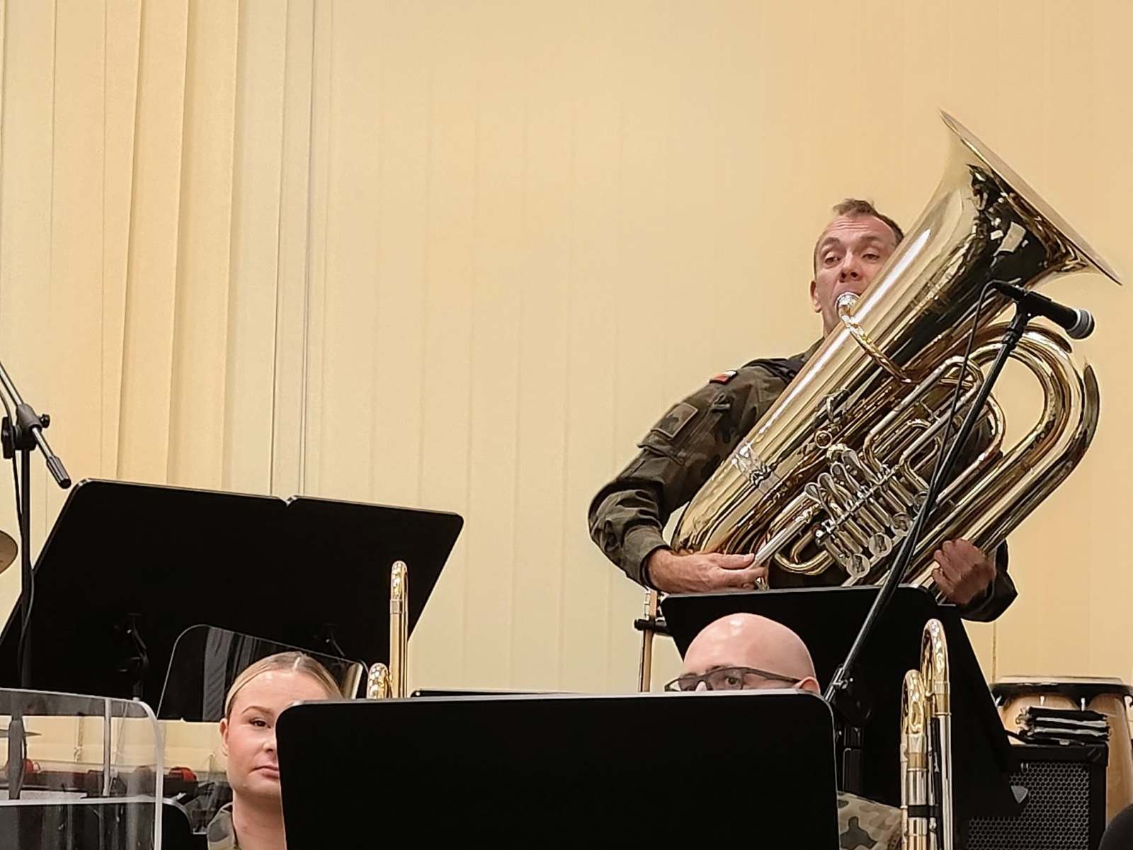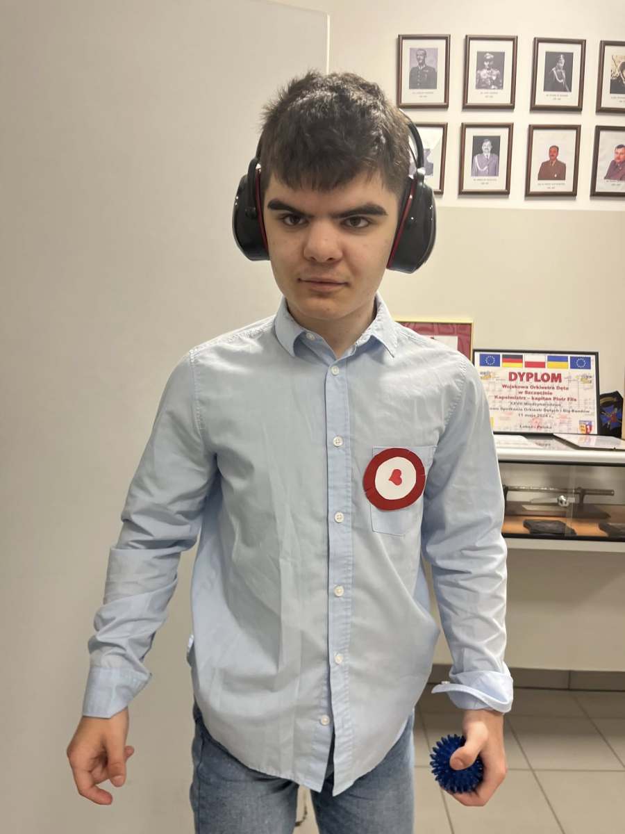 z muzykami Orkiestry Wojskowej w Szczecinie, podczas którego wspólnie zanuciliśmy piosenkę pt. ”Czerwone maki na Monte Cassino.” Następnie utrwaliliśmy nazwy instrumentów