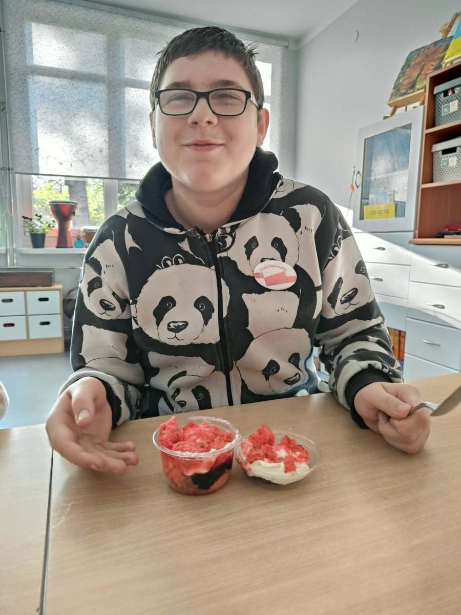 i zgadywaliśmy dobrze nam znane melodie tj. „Reksio” czy „Różowa Pantera.” Słuchanie popularnych piosenek przyniosło nam dużo radości. Punktem kulminacyjnym naszego spotkania było wspólne odśpiewanie Hymnu Narodowego. Mamy nadzieję, że przed nami jeszcze kolejne muzyczne spotkania.