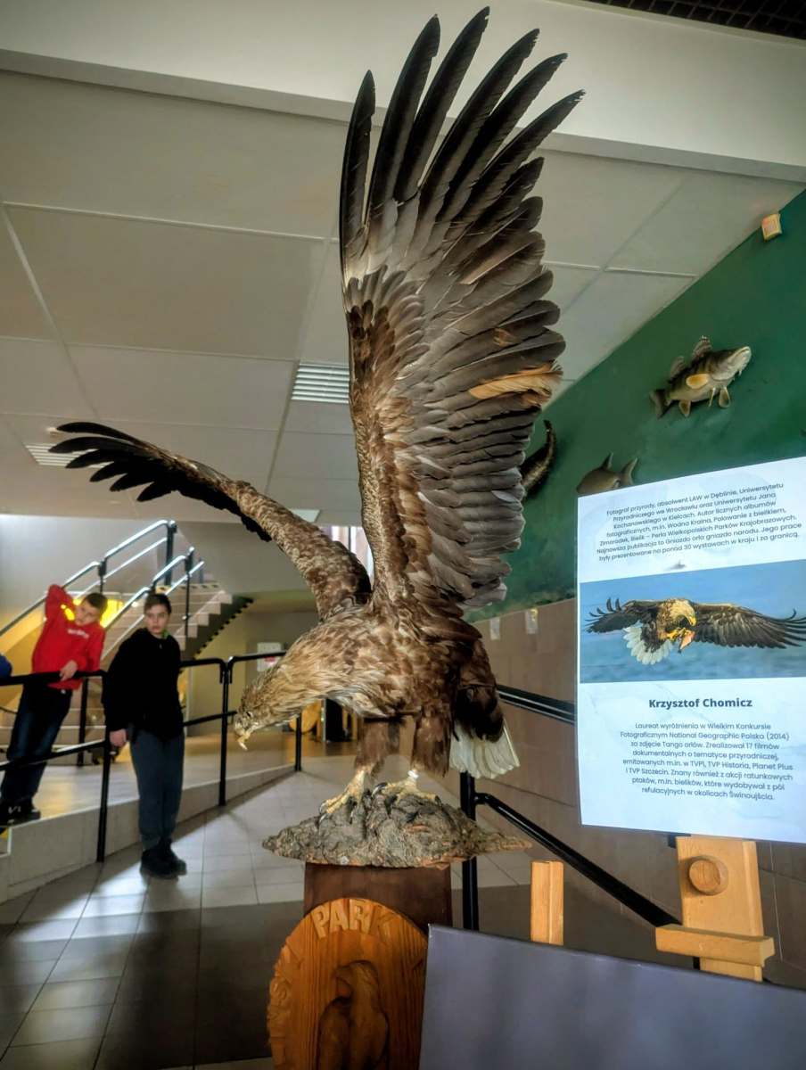 W muzeum poznaliśmy fascynujące informacje o przyrodzie naszego regionu . Dowiedzieliśmy się, że każdy park narodowy ma swój symbol, a symbolem Wolińskiego Parku jest orzeł bielik – największy ptak drapieżny Polski, obecny również w polskim godle, co podkreśla jego znaczenie dla przyrody i historii.